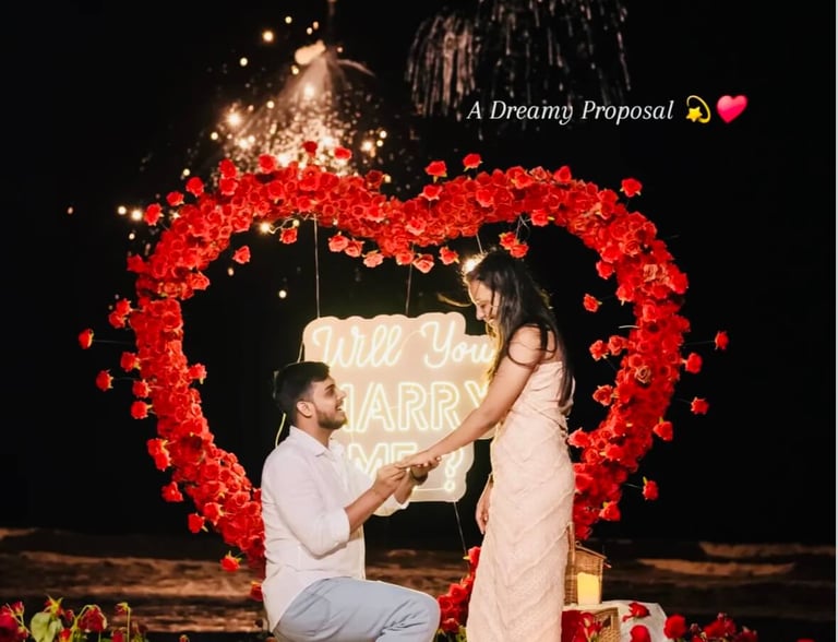 •🌹 Romantic Proposals – Heart-shaped setups, candlelight dinners, fairy light décor