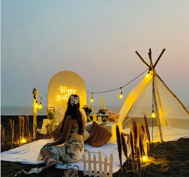 Sea Royal Cafe at Navapur Beach, Virar West offers the perfect setting for unforgettable proposals Whether you dream of a candlelit pathway, a floral arch, or a private boho-style beach setup, here’s everything you need to know to plan your dream proposal.