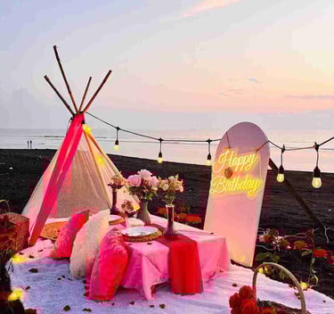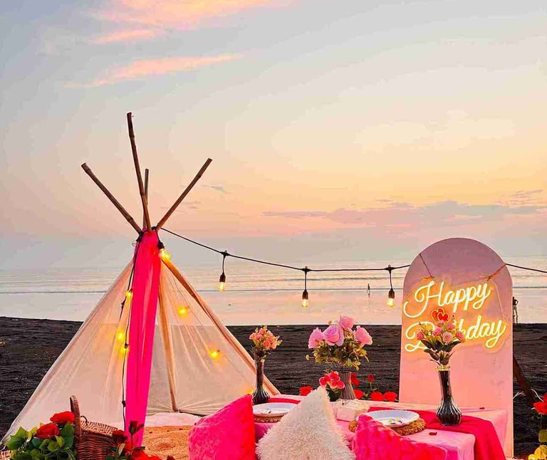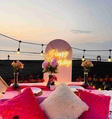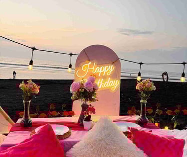Plan a surprise birthday with stunning beach decoration in Virar & Mumbai. Sea Royal Café offers romantic seaside setups, candlelight dinners, neon lights, cake & complete packages.